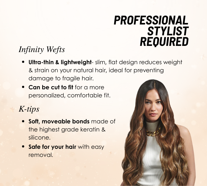 Life is busy, and great hair should make things easier. Infinity wefts provide instant volume and polish, so even on low-effort days, your hair still feels styled, elevated, and salon-fresh.